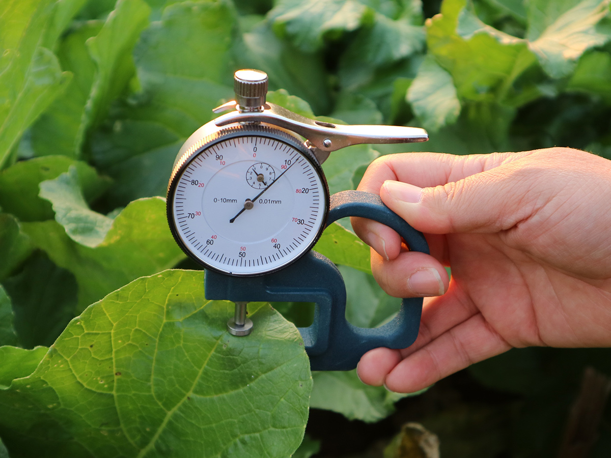 叶片是植物最重要的器官,其厚度变化可以反映出植物生长状态的变化,如光合作用、水分情况、蒸腾情况、土壤温湿度情况、养分情况等。研究表明,叶片厚度变化具有周期规律性,可分为长周期和短周期(24小时)。掌握这些规律对研究植物水分状态具有重要意义,还可以通过这些规律指导农业节水灌溉。YHD系列叶片厚度仪是一种专业测量叶片厚度的工具,可以准确的测量出叶片的厚度。